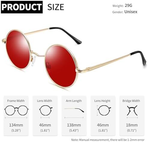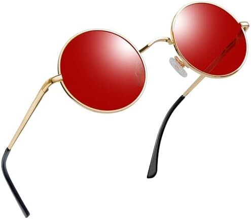 • ✔PERFECT ROUNDED FRAME, UNIQUE AND FASHION - High-quality metal alloy frame, soft silicone nose pads, high definition polarized lens, perfect lightweight small round sun shades creation that keeps you in love with it. Small dark lens with spring hingles, no matter what faceshape you are, this lenon round rim sunglasses for men women can fit you perfectly. Choose this uni*** polarized sunglasses for your outfits when you go outside for shopping, beach, parties, driving, running, fishing