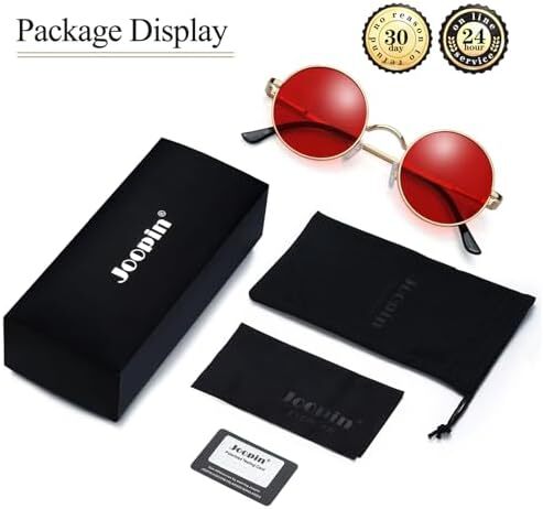• ✔EXQUISITE GIFT BOX PACKAGED- Joopin retro round circle sunglasses x 1 / Joopin exquisite bag x 1/ Joopin exclusive lens cloth x 1/ Joopin polarized testing card x1. It is gift packaged already, making it a wonderful yet practical festival gift idea for friends and family!