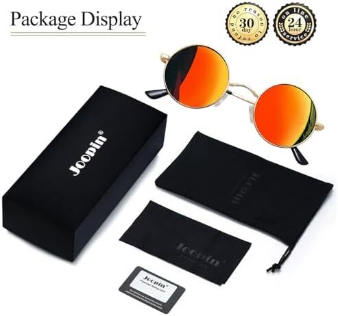 • ✔Excellent Gift Box Package - Joopin round eyewear x 1 / exquisite cloth bag x 1 / microfiber cleaning cloth x 1 / polarized test card x 1. All Joopin customers are covered by a 30-day money back guarantee. If for any reason you are not satisfied with your purchase, customers can return it and receive a refund. You don't have to take the risk of trying!