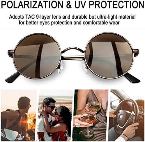 ✔GREAT FOR HIPPIE HALLOWEEN COSTUME - Joopin lightweight circular sunglasses polarized uv protection, can block 100% of harmful UVA/UVB ray, protecting your eyes in style. Use the money you spend on single-use cstume sunglasses can buy a pair of Joopin good quality sunglasses in protection and fashion. Many classic cosplaying characters wear rounded sunglasses. Perfect vintage accessory to add a touch of retro flair to your outfit or hippie costume in the coming holidays