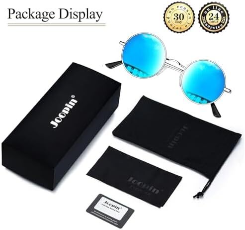 ✔EXQUISITE GIFT BOX PACKAGED- Joopin retro circle sunglasses x 1 / Joopin exquisite bag x 1/ Joopin exclusive lens cloth x 1/ Joopin polarized testing card x1. It is gift packaged already, making it a wonderful yet practical festival gift idea for friends and family!