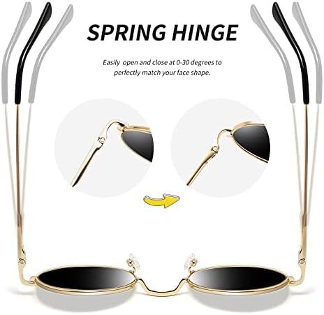 • ✔NOTHING ON YOUR EAR - Joopin thin metal small round sunglasses are super lightweight yet strong. Only weight 23g (0.05 lbs), you can barely feel this wire rimmed sunglasses on your ear. Ideal for driving, travelling, shopping, fishing, skiing and other outdoor activities. Spring hinges with ergonomic design, flexible arms can increase or decrease 30 degrees, so circle shades for men women can fit any head and face shape. Definitely a must-have vintage sunglasses