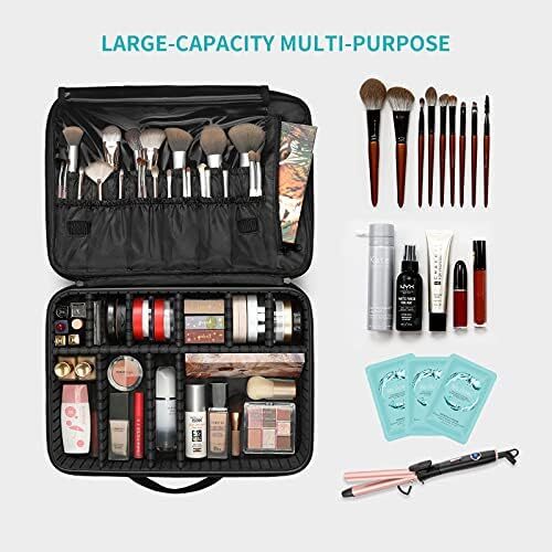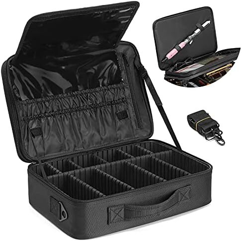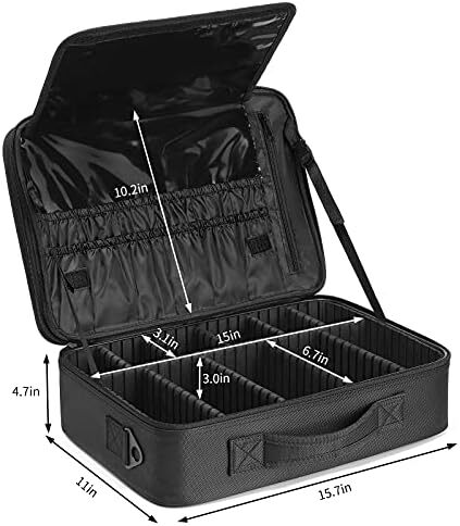 Vlando large cosmetic case, ①Leather: It is a high-grade Oxford cloth wear-resistant material, and the inner lining is waterproof nylon cloth; ②The first zipper is opened to store curling irons and facial mask; the second zipper can be opened to place makeup Brush, lipstick, eye shadow, skin care products, nail polish, nail art tools, shampoo, etc.; ③10 mobile pallets, diy grid size, suitable for storing all your products;