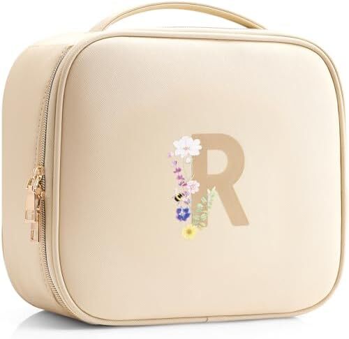 کیف آرایشی Vlando برای مسافرت، اول نام خانوادگی کیف آرایش سفارشی، کیف لوازم آرایشی چرم PU برای دختر خانم ها هدیه دوست R, R, R Thumbnail