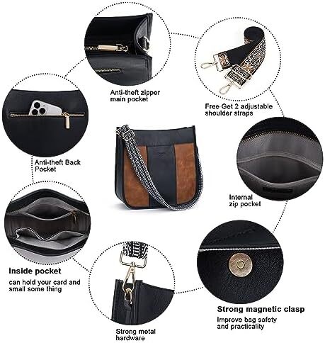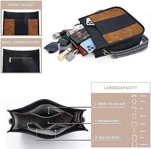 ✔【Crossbody Bag Size&Structure】This crossbody handbag dimension:(L)11.8inchx(W)4.13inchx(H)11.6inch,weight about 0.6kg/1.32pounds, Internal structure is 1 main compartment,1 inner zipper pocket,2 slip pockets, External structure including 1 metal magnetic buckle front pocket and 1 anti-theft back pockets,come with metal zipper closure,main pocket and back pocket anti-theft zipper-double antitheft design to protect your property safety.