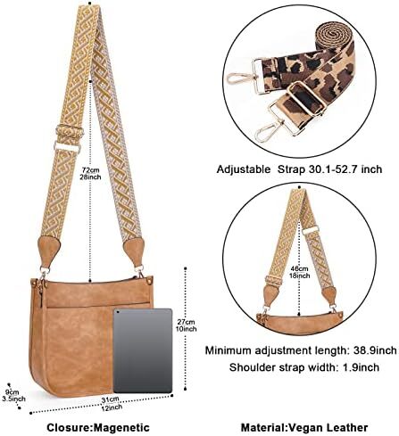 • ✔【Crossbody Bag Dimension&Structure】This crossbody handbag dimension:(L) 12 x (W) 3.5x(H)10inch,weight about 0.61kg / 1.34pounds,Internal structure is one main compartment including 1 main pocket,1 inner zipper pocket,2 slip pockets-cell phone pocket and ID card slot.External structure including 1 metal magnetic buckle pocket and 1 back anti-theft pockets,come with metal zipper closure,main pocket and back pocket antitheft zipper design-double antitheft to protect your property safety.