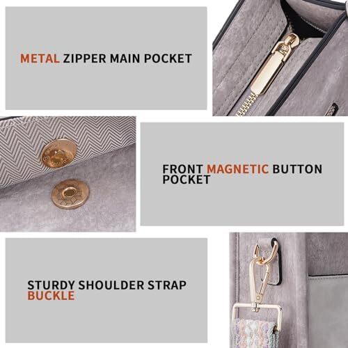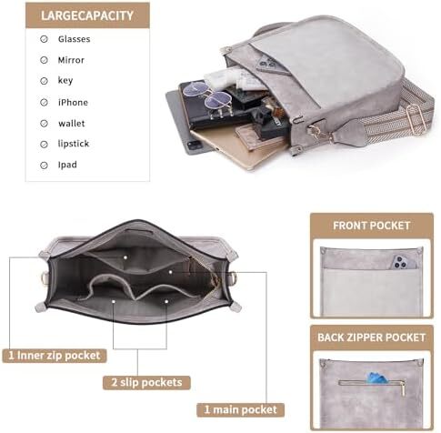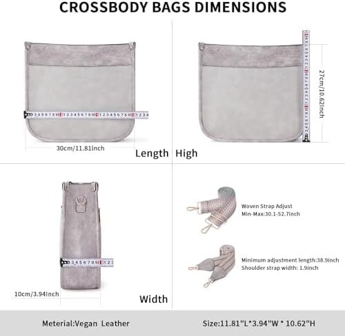 ✔【Crossbody Bag Dimension&Structure】This crossbody handbag dimension:(L) 12 x (W) 3.5x(H)10inch,weight about 0.61kg / 1.34pounds,Internal structure is one main compartment including 1 main pocket,1 inner zipper pocket,2 slip pockets-cell phone pocket and ID card slot.External structure including 1 metal magnetic buckle pocket and 1 back anti-theft pockets,come with metal zipper closure,main pocket and back pocket antitheft zipper design-double antitheft to protect your property safety.