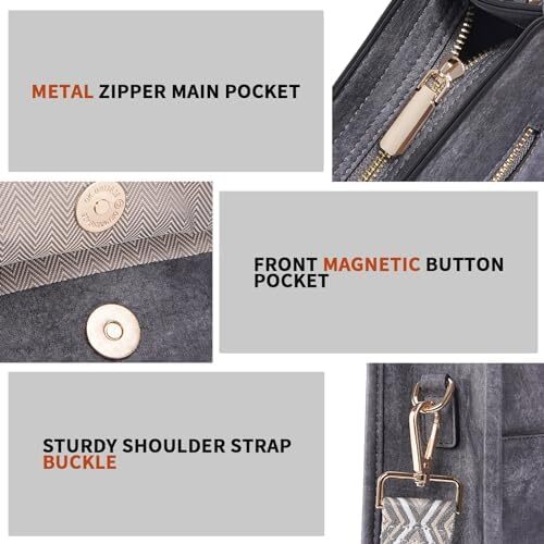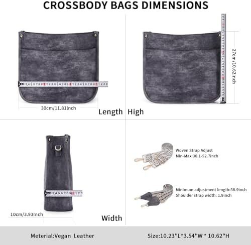 ✔【Crossbody Bag Dimension&Structure】This crossbody handbag dimension:(L) 12 x (W) 3.5x(H)10inch,weight about 0.61kg / 1.34pounds,Internal structure is one main compartment including 1 main pocket,1 inner zipper pocket,2 slip pockets-cell phone pocket and ID card slot.External structure including 1 metal magnetic buckle pocket and 1 back anti-theft pockets,come with metal zipper closure,main pocket and back pocket antitheft zipper design-double antitheft to protect your property safety.