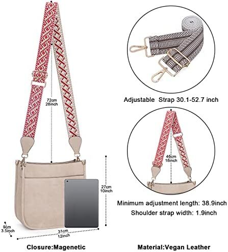 • ✔【Crossbody Bag Dimension&Structure】This crossbody handbag dimension:(L) 12 x (W) 3.5x(H)10inch,weight about 0.61kg / 1.34pounds,Internal structure is one main compartment including 1 main pocket,1 inner zipper pocket,2 slip pockets-cell phone pocket and ID card slot.External structure including 1 metal magnetic buckle pocket and 1 back anti-theft pockets,come with metal zipper closure,main pocket and back pocket antitheft zipper design-double antitheft to protect your property safety.