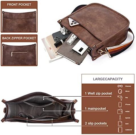 • ✔【Crossbody Bag Dimension&Structure】This crossbody handbag dimension:(L) 12 x (W) 3.5x(H)10inch,weight about 0.61kg / 1.34pounds,Internal structure is one main compartment including 1 main pocket,1 inner zipper pocket,2 slip pockets-cell phone pocket and ID card slot.External structure including 1 metal magnetic buckle pocket and 1 back anti-theft pockets,come with metal zipper closure,main pocket and back pocket antitheft zipper design-double antitheft to protect your property safety.