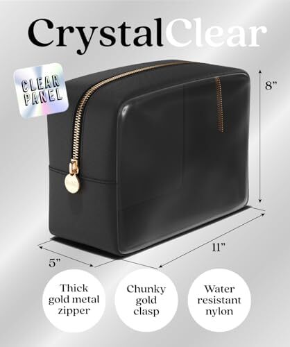 کیف لوازم آرایشی Embla Clear، کیف لوازم آرایش با زیپ شفاف، کیف لوازم آرایش زنانه ناز، کیف مسافرتی لوازم آرایشی شفاف، کیف آرایشی کوچک و بزرگ، مشکی Image